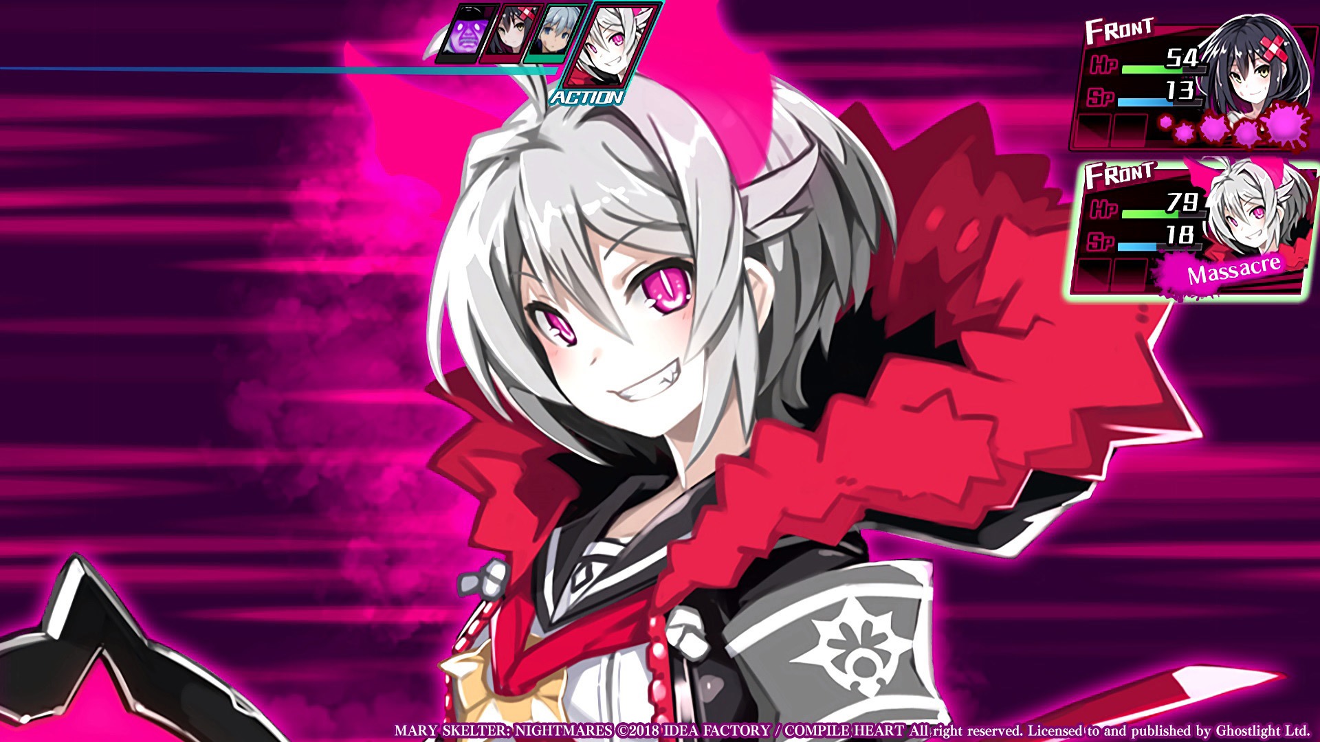 Ghostlight noted a few of the things PC owners can expect from their version of Mary Skelter: Nightmares. The game will allow you to use a controller or keyboard and mouse to play, as well as rebind controls. Steam Achievements, Cloud Saves and Trading Cards will also be present.
