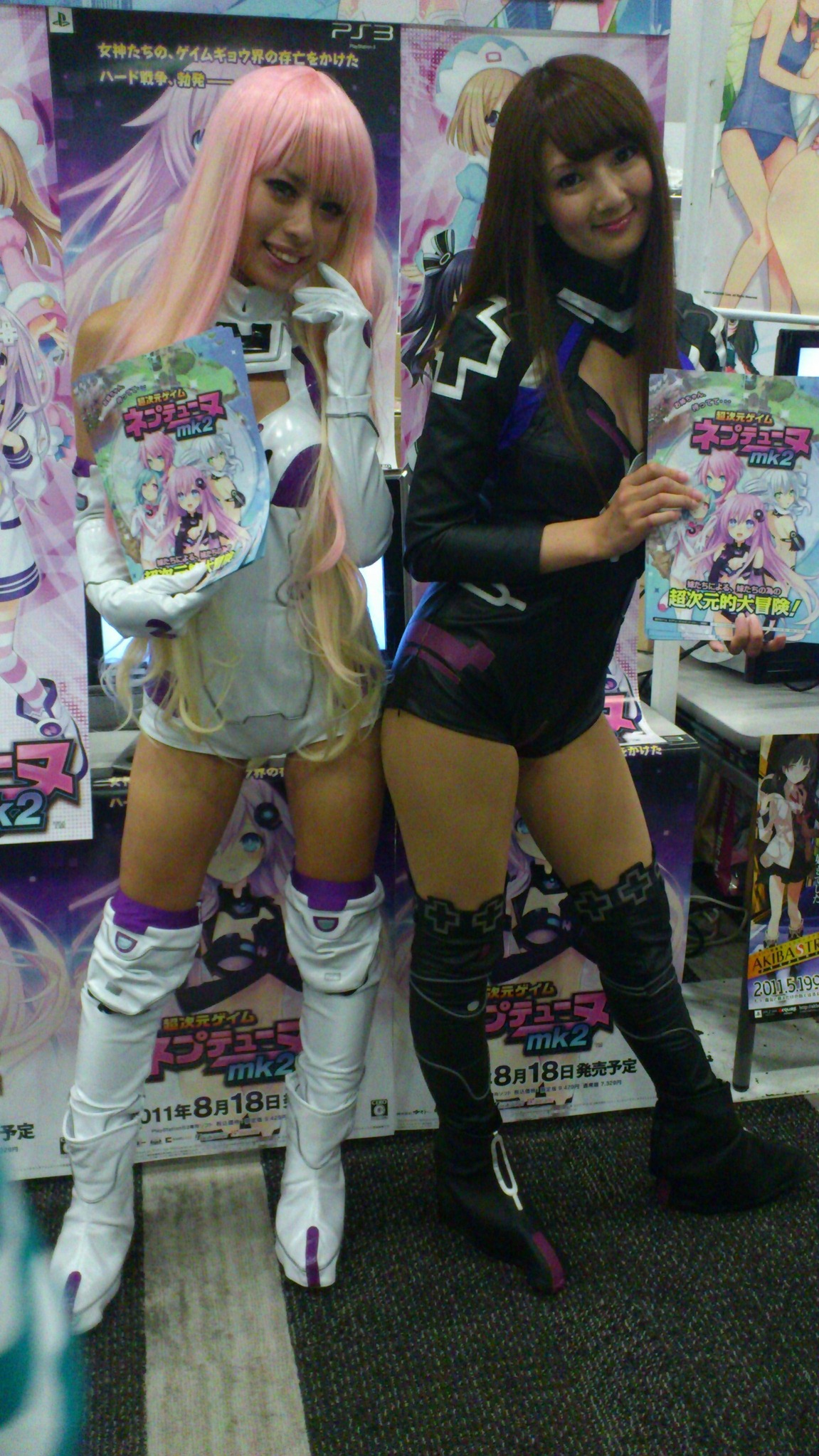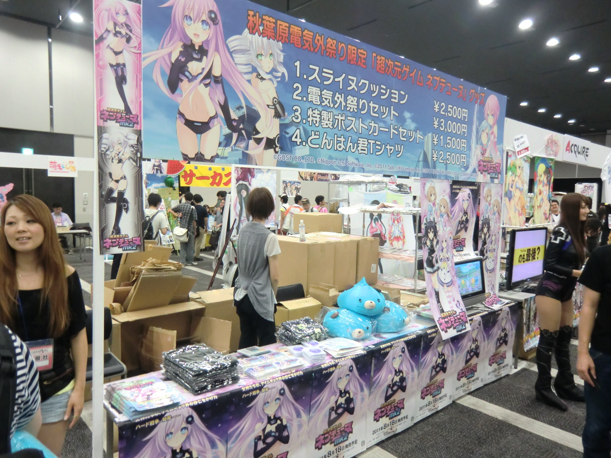 Video game publishers 5pb, Nippon Ichi, Acquire, and Idea Factory are part of a summer festival located at Belle Salle in Akihabara. Idea Factory’s business development manager, Damien Urvois, sent us a couple of photos of their booth and the Hyperdimension Neptunia cosplayers.