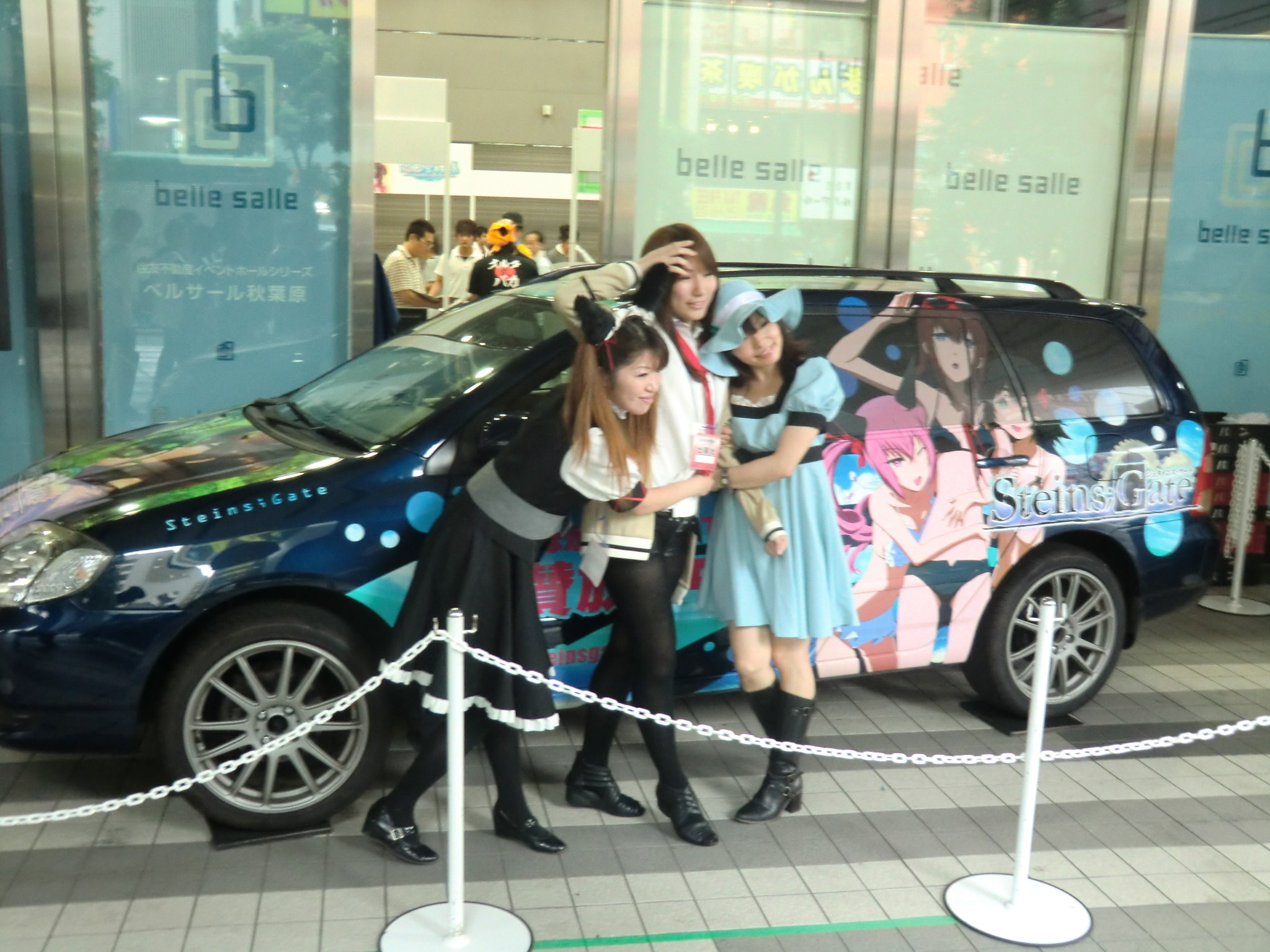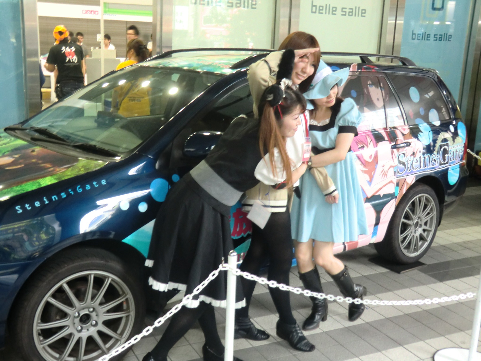 Steins;Gate cosplayers by a Steins;Gate car. 5pb held a live stage event yesterday. If you’re near Tokyo the festival runs until Saturday, August 13.