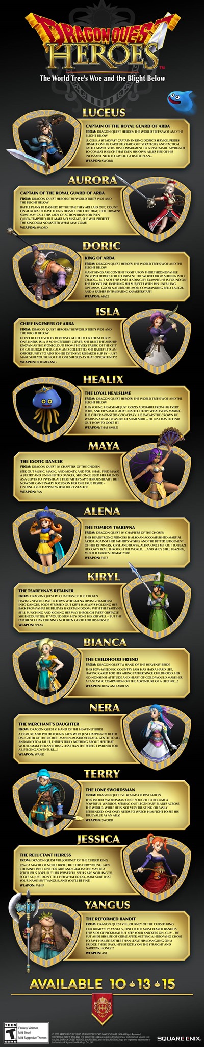 The story of Dragon Quest Heroes begins when monsters overrun the city of Arba, and it’s up to you to restore peace to the kingdom with help from Dragon Quest protagonists both new and old. Dragon Quest Heroes: The World Tree’s Woe and the Blight Below will release in North America for the PlayStation 4 on October 13th, 2015 for $59.99. A special Collector’s Edition is also available for pre-order from Square Enix’s online store.