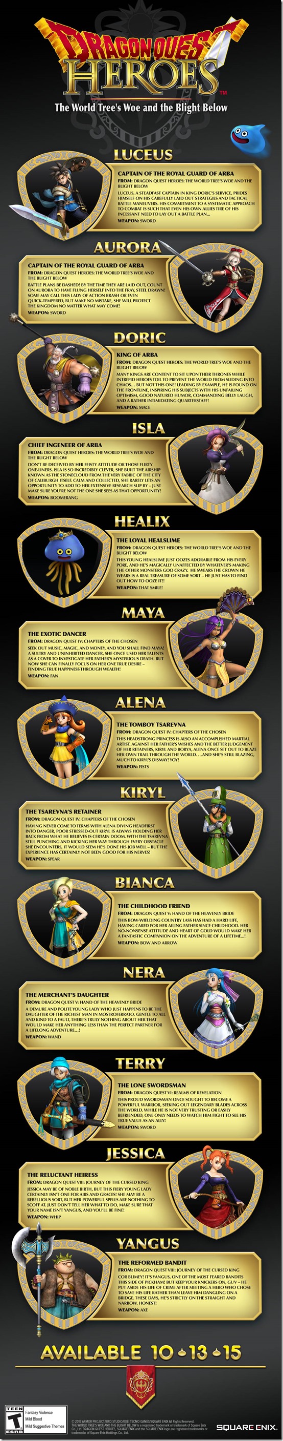 Square Enix has released new in-depth information regarding the characters who appear in Dragon Quest Heroes: The World Tree’s Woe and the Blight Below. Some of the character’s are original to the upcoming title, however some may be quite familiar to longtime fans of the franchise, such as Nera (Dragon Quest V: Hand of the Heavenly Bride) and Yangus (Dragon Quest VIII: Journey of the Cursed King). Here’s a look at all the characters, along with a little bit of backstory for each one.