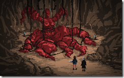 Being an RPG, it has item crafting and a stats system, and it has real-time combat. Little else is known about the game apart from what can be seen in the screenshots – that includes huge naked men that cry lava, those eyeballs, and a “Puke Bar.” It also has local co-op that lets a friend drop in or out at any time.