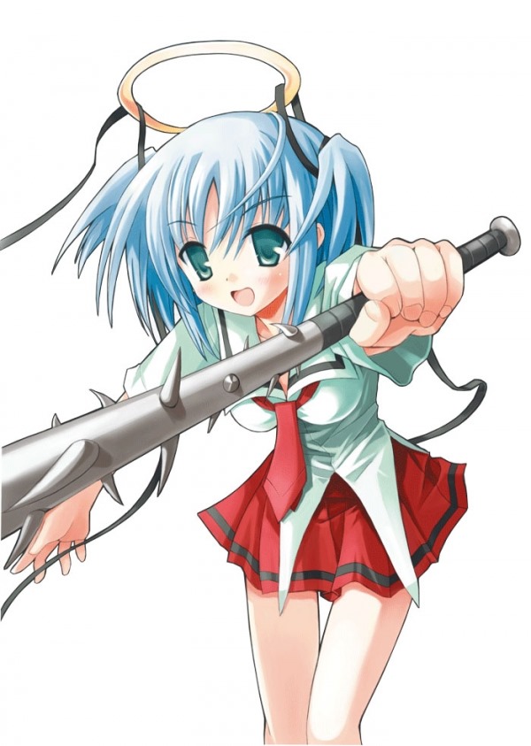 Which brings us to the final character in this feature, Dokuro the angel from Bludgeoning Angel Dokuro-Chan. She was sent to the past to kill the series’ hero, Sakura Kusakabe, but doesn’t since she’s fallen in love with him. Comedy ensues.