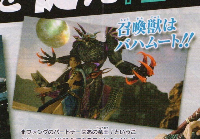Bahamut is a dragon human hybrid, as revealed in Shonen Jump. Perhaps, a draconian? Fang, a new female character, has the iconic eidolon as a summon. Bahamut’s drive mode hasn’t been revealed yet so he might transform into a fighter jet. If Shiva can morph into a motorcycle, anything is possible, but a more likely possibility is Fang riding Bahamut in dragon form while firing Megaflare blasts.
