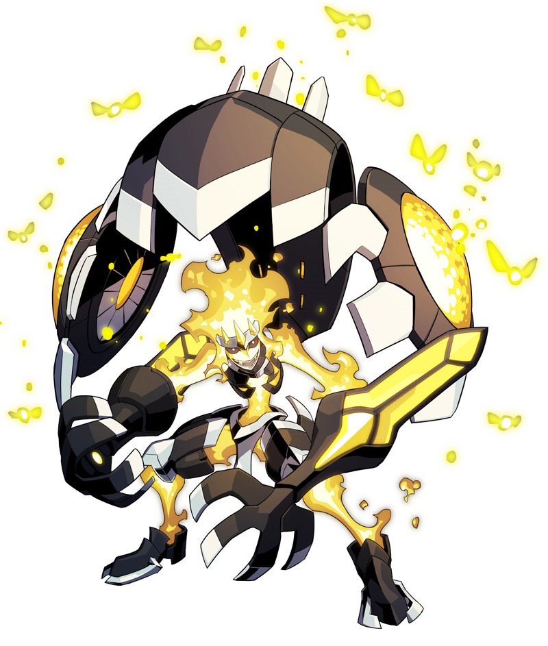 Arrogant Radiance: Copen switches his shield to attack mode and fires at Gunvolt with a giant laser beam and photo guns. Based on Iota.