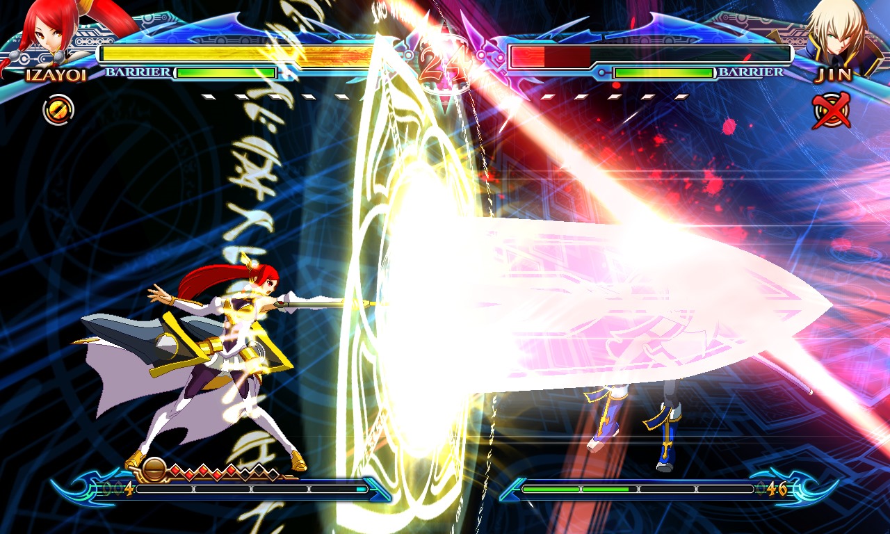 Here’s how Gain Art mode alters attacks. Izayoi can attack with Sonic Saber, a fast and direct projectile attack. Use the same attack in Gain Art mode and projectiles surround your opponent.