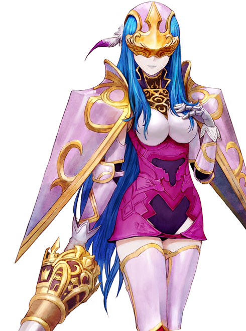 Chrom is a prince from a land in another dimension, and he’s a “Lord” Mirage. Since transferring to this world, he has lost his memories. He has a courageous personality, and a strong sense of justice. While in combat, he changes into a sword as a trusted partner for Itsuki, who isn’t very experienced in combat. Sheeda (CV: Saori Hayami): Master: Tsubasa Oribe