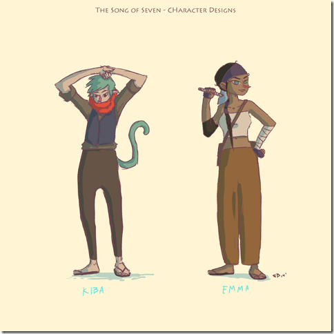 The Song of Seven consists of five chapters, and follows a young boy Auroki – a simple folk with monkey-like tails – called Kiba, who is described as “energetic, daydreaming, [and] sarcastic.”