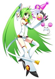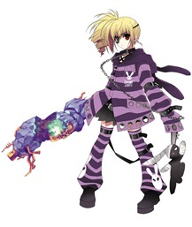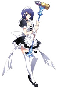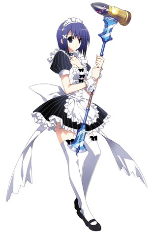 In full maid regalia, Itsuki (voiced by Akiko Hasegawa) was originally the type of person who would own maids instead of being one. She doesn’t know much of the world, so she has a gentle personality but a strong sense of justice. She beats opponents over the head with her battle hammer, Maggie.