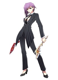 Tokiya (voiced by Eiji Miyashita) is the other male main character in this game. He’s currently the CEO of a pharmaceutical company, and he’s fighting to resurrect his parents, who were assassinated fifteen years ago. He uses a long sword named Setsuna.