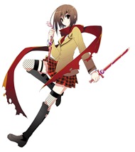 Yuzuha (voiced by Aki Toyosaki) is a descendent of ninjas from the Bakufu era. She’s a cheerful high school girl who trains her ninja skills everyday. Her weapons are Shoukaku and Zuikaku — a ninja blade, and a kunai.