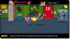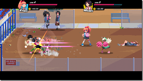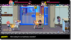 In River City Girls, players follow Kyoko and Misako. Their boyfriends Kunio and Riki have been kidnapped, and it is up to them to go through River City’s six regions beating up anyone in their path as they head out to reunite with their lost loves. There will be RPG elements, as they can level up, shop, get equipment, and have some food. It will also be able to recruit fallen foes to continue in your fight.