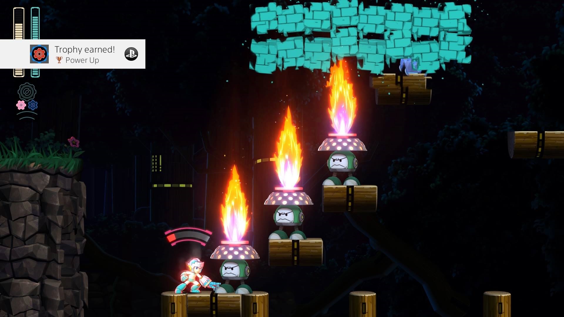 The Speed Gear was definitely my more used one, easily accessed with R1, and slowing down everything on screen to a crawl. You can easily defeat enemies swarming around you, cross obstacles that would normally require tight timing, and more. The Power Gear is a bit harder to seamlessly fit into gameplay, but one thing I realized halfway through the game was that you don’t really use the Power Gear on its own for the Charge Shot, despite being the most publicized use of the Gear in promo material. Instead, it’s better to see it as an instantaneous version of the charged Special Weapons that appeared in the classic Mega Man series and X series games. Powered Special Weapons don’t change how they fundamentally work, but may have increased strength or slightly altered properties, which is very helpful in making Mega Man feel like a Swiss Army Knife-bot. While the game is balanced so that the Double Gears are not required technically, it’s very helpful, especially when the Robot Masters in this game each carry one of the two Gears themselves as well.