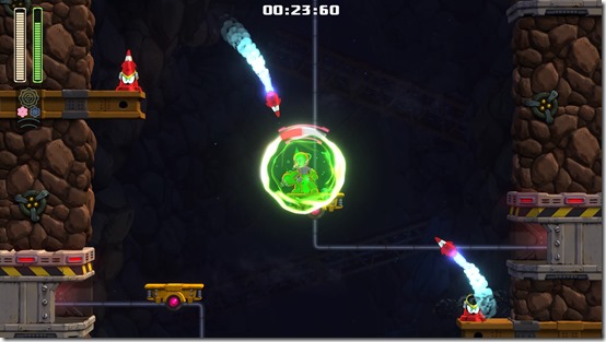For a series all about beating bosses and taking their powers, nothing really sucks the fun out of the Mega Man games as finding out that a power-up is really disappointing. Fortunately, Mega Man 11 provides the player with a set of special weapons that all feel useful, and make it easy to switch to to encourage their use more often. Before diving into the specifics, I’d like to reiterate that using the Power Gear mainly enhances the strength of the weapon, though some have changed properties. As a rule of thumb, if it works normally, it’ll do even better with Power Gear active, but out of the eight weapons, it’s Chain Blast and Tundra Storm that really benefit from Power Gear. Bounce Ball