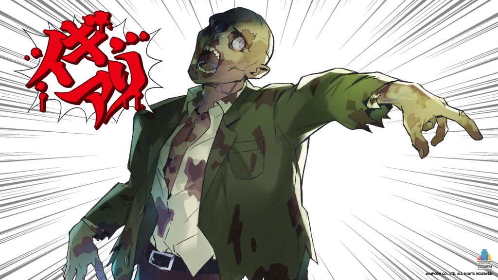Capcom also shared concept art for these designs. In the case of the Monster Hunter character, the arm position was originally different. In the case of the zombie, an initial pose had it showing its back instead.
