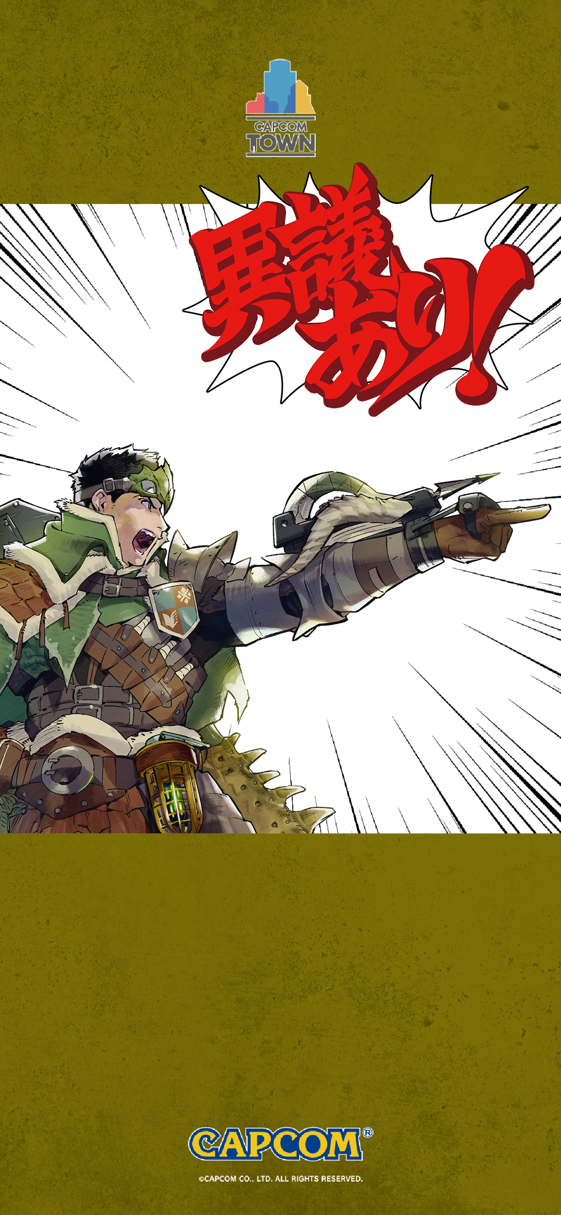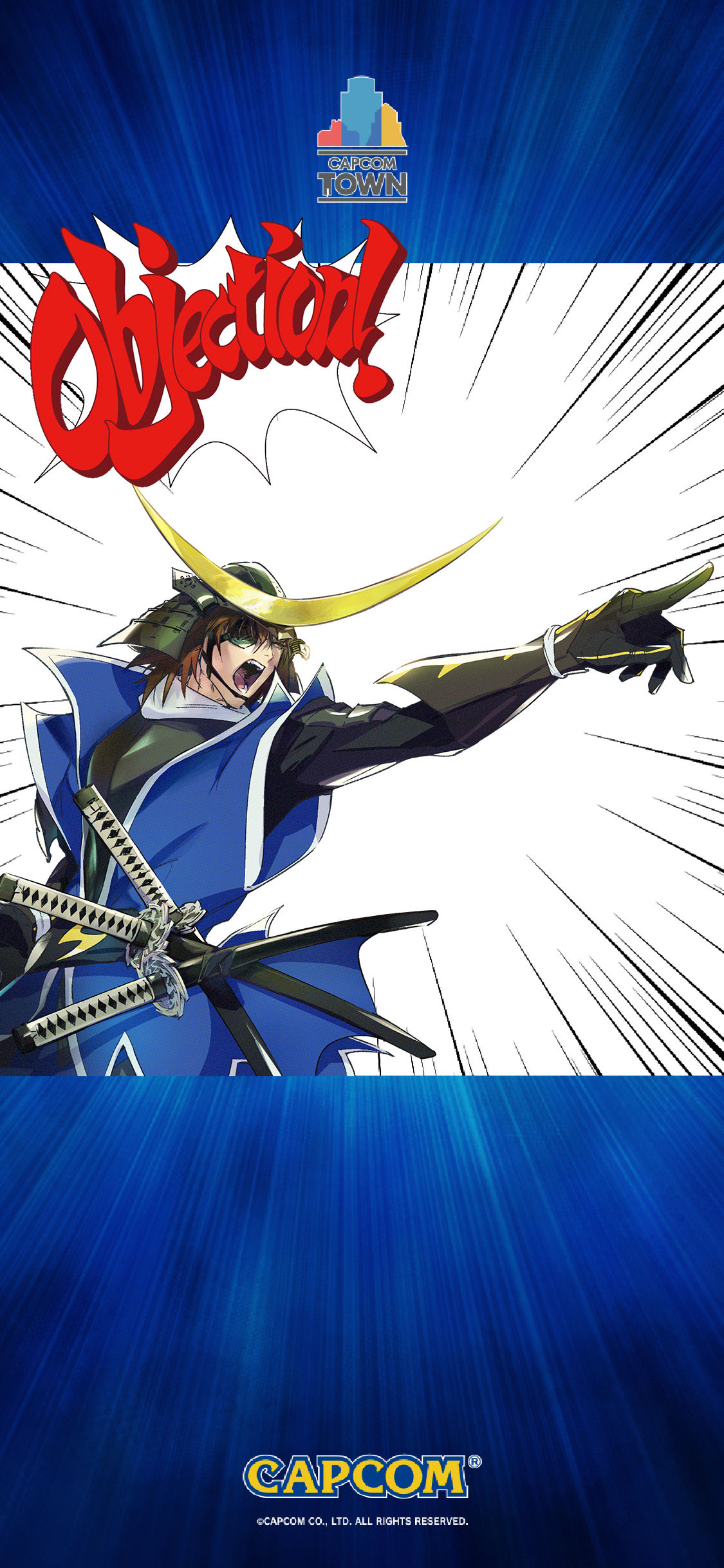 Here’s a closer look at how the four pieces looked. The featured Capcom characters in the “objection” wallpapers include Mega Man, a hunter from Monster Hunter, a zombie from Resident Evil, and Masamune Date from Sengoku Basara.
