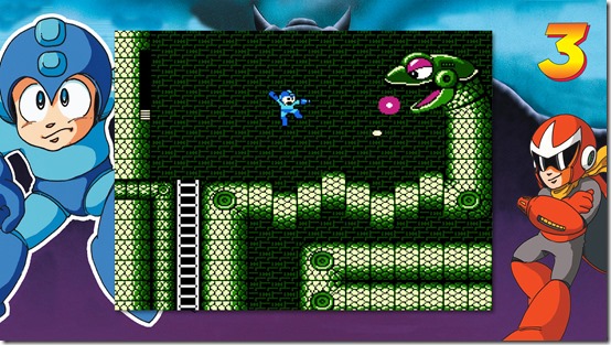 Series veterans know that Mega Man is all about the heat of the moment-to-moment gameplay, though. Did you get a little too gutsy with a jump and fall in a pit? Were you not quick enough to escape a barrage of lasers? You can get back into the game in a flash thanks to the brand-new “rewind” feature! Just by holding a button, you can roll back gameplay, allowing you to pick up where you left off without missing a beat.