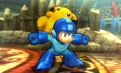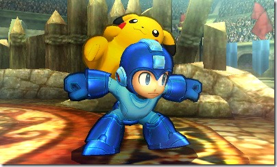 I’m not entirely certain just what Pikachu is trying to accomplish up there, but Mega Man doesn’t seem like he minds… much. (Or maybe it’s that his face is always stuck in that expression.) Other screenshots for the week include Mario and Sonic going one-on-one and Kirby being sent to his demise in a Kid Icarus: Uprising stage.