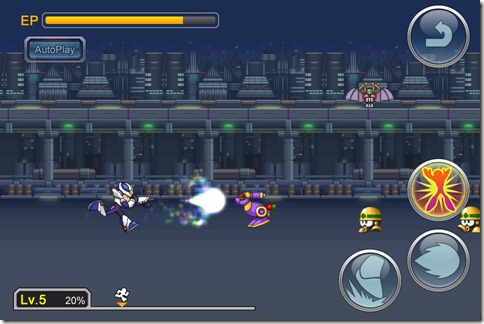 As a concept, Mega Man Xover is interesting because it has a mishmash of Robot Masters from Mega Man’s history. The bad news is Mega Man Xover is barely like a Mega Man game. You don’t really control Mega Man, he automatically runs right… and right into Mettons unless you shoot them. Mega Man can also blast the robot bats above by jumping and then shooting. You can charge shots, but in the Tokyo Game Show demo most enemies were defeated after one shot. Storm Eagle from Mega Man X was waiting at the end of the level for me. Instead of an intense fight that tested a player’s reaction time, Mega Man Xover’s boss battles are… turn based. I fired a shot. Storm Eagle retaliated with a dive attack. I fired another shot. Storm Eagle dove into Mega Man. Taking damage charges Mega Man’s buster and after three hits I could use a more powerful charge shot. My reward for defeating Storm Eagle was a card and the demo ended after I collected it. Poor Mega Man. Capcom’s former mascot character deserves a better game than this for his 25th birthday.