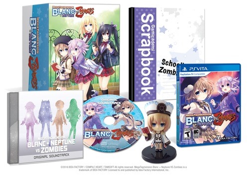 Idea Factory International has put together a MegaTagmension Blanc + Neptune VS Zombies Limited Edition, and it’s exactly what people would expect it to be. The $62.99 collector’s edition gives people a copy of the PlayStation Vita game, a 32-page Gamicademi Scrapbook art book, and a 21-song soundtrack CD. It also includes a 2.5” Blanc figure, complete with removable hat.
