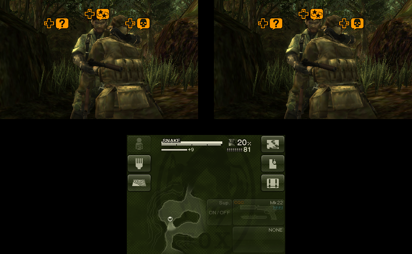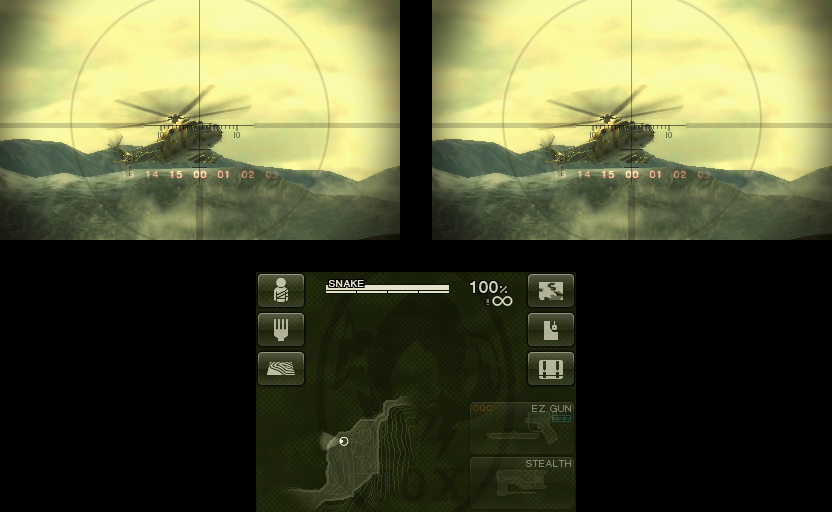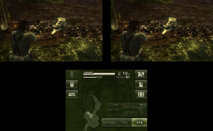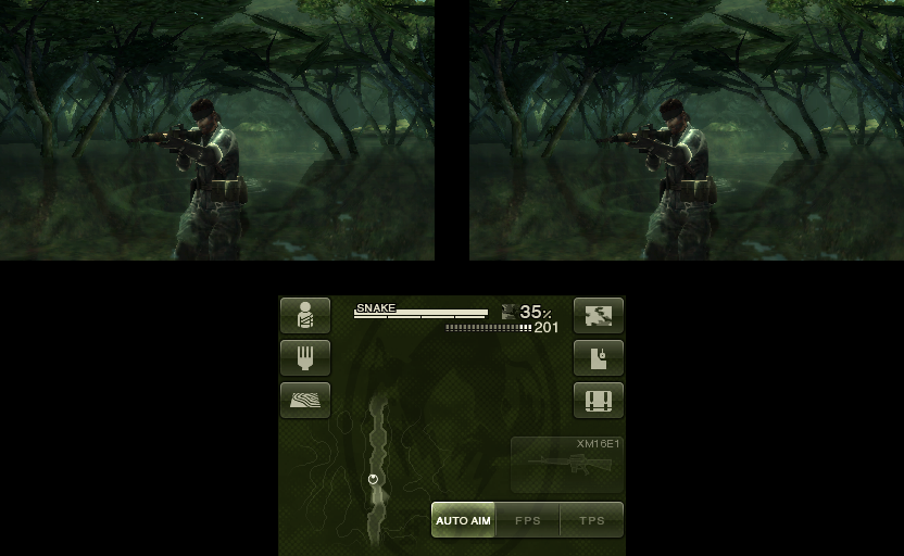 New for the 3DS version are features like gyro control for balancing on narrow ledges and suspension bridges plus a photocamouflage system that changes Snake’s fatigues based on pictures you take with the camera. Metal Gear Solid: Snake Eater 3D also supports the Circle Pad Pro accessory, which makes the second analog stick control the camera.