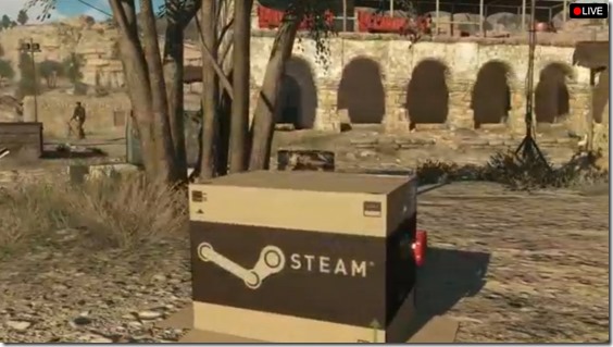 Metal Gear Solid V: Ground Zeroes and Metal Gear Solid V: The Phnatom Pain are both coming to PC via Steam, Konami announced at Gamescom today. Metal Gear Solid creator Hideo Kojima said that a release date for PC cannot be announced yet, but that Ground Zeroes would be released for PC first. Additionally, the box you see above will be an in-game item that you can use.