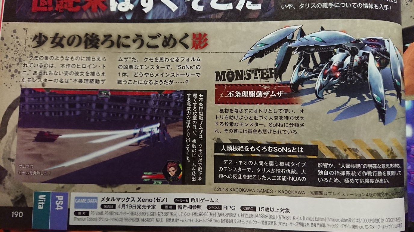 More information on Metal Max Xeno was revealed in the latest issue of Famitsu, showing off more SoNs that Thalys will have to face off against, as well as a mysterious power that Thalys has in his mechanical arm. Zamza