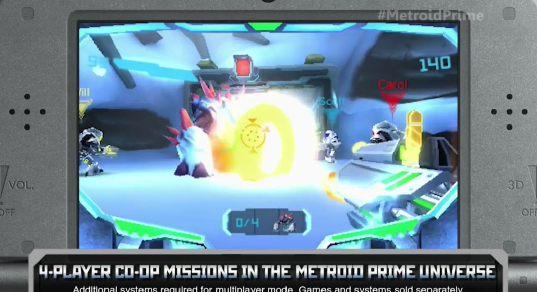 Metroid Prime: Federation Force was announced for Nintendo 3DS at Nintendo’s E3 2015 Digital Event this morning. The game is a first-person 4-player co-op game set in the Metroid Prime universe. In addition, the game also includes a mode called “Blast Ball”. This is the 3-on-3 sci-fi sports battle game that Nintendo showed off during the Nintendo World Championships earlier in the week. Metroid Prime: Federation Force is coming in 2016 to Nintendo 3DS. The game is developed by Next-Level Games.