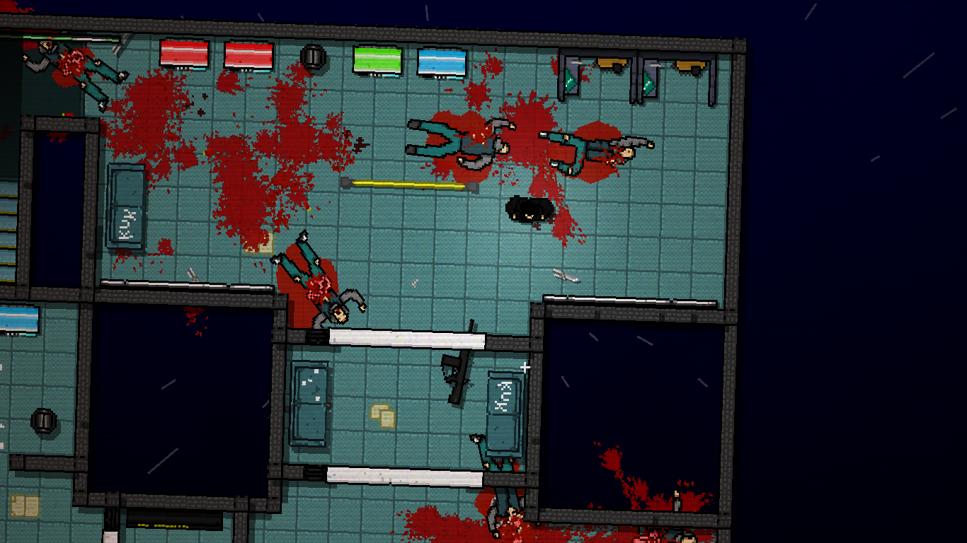 Midnight Animal takes place thirty years after the events of Hotline Miami 2. It will feature brand new masks that significantly change how levels play, sometimes by unlocking unique weapons. It also offers sixty available weapons, including many environmental weapons like bricks in piles of debris, pool cues attached to the wall, and shovels and hammers in utility closets.