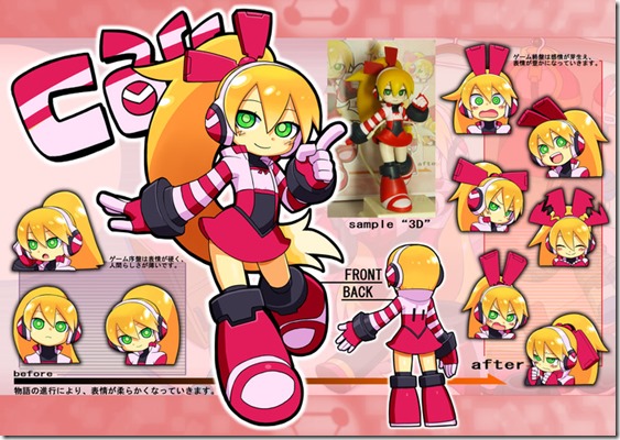 The final design for Call, Beck’s sidekick in Mighty No. 9, has been decided. The design was voted on by fans, and the final design is the one below, created by Inti-Creates’ Yuuji Natsume: