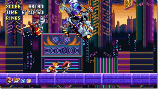 Ray, on the other hand, requires a bit more finesse. His gimmick is the ability to glide. It is executed in a manner similar to Tails’ flight. Once Ray jumps, you press the jump button again to begin the Air Glide. It is a move that can be undeniably helpful, but it requires space and timing. Once Ray is in the air, you use the D-pad to alternate between diving and pulling back. If you can get the rhythm down, he can fly further than Knuckles or Tails. But, it takes time to learn how to do this, he is vulnerable to attacks in the air while this is going on and you might not always find great areas to employ this ability in every level. Which, again, means he is a good pick for Encore mode, where you could swap him out for someone with a more useful ability until you find a place where Air Glide could come in handy.