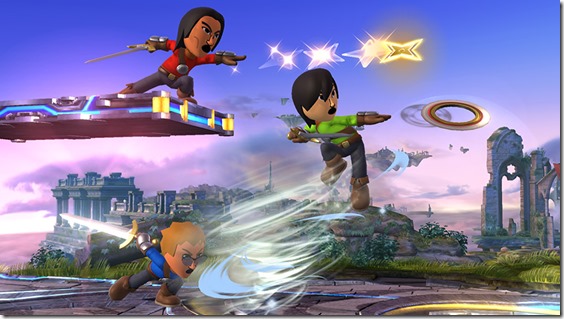 As revealed last week, Miis are playable characters in Super Smash Bros. on Wii U and Nintendo 3DS. Miis come in three varieties—Swordfighters, Brawlers and Gunners. Last night on Miiverse, director Masahiro Sakurai outlined some of the Mii Swordfighter’s moves. “Here are some weapons the Mii Swordfighter can use: Shurikens of Light, Chakrams, and Gale Strikes,” Sakurai wrote. “You can control the direction the Chakram is thrown, or even make it stall in midair. The Chakram is also the only one of these tied to the side special move, so you can use one of the other items consecutively with this one.” Super Smash Bros. will release on 3DS in October, and the Wii U version will follow sometime this holiday.