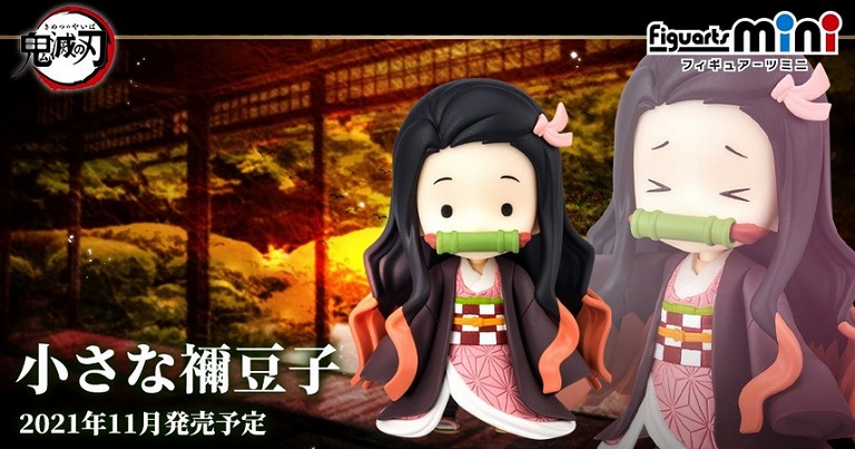 Tamashii Nations will release two palm-sized figures of Nezuko and Kanao from Demon Slayer. They are part of the Figuarts Mini collection. They will come out in November 2021, but pre-orders will start on July 2, 2021. Nezuko will have an alternate expression, whereas Kanao will have extra arm parts. Each figure costs 2,970 JPY, which is approximately $26.75. [Thanks, Famitsu!] Both the Kanao and Nezuko Figuarts Mini figures stand at under 100 millimeters and come with a special stand for you to place them on. Nezuko has a simplified chibi-like design, and she has two expressions. She has a neutral face and one where her eyes are cartoonishly closed. The mini Nezuko figure is based on the chibi version of Nezuko when she shrank herself to escape Kanao in episode 21 of Demon Slayer. Speaking of Kanao, the Kanao figure is, like in canon, less expressive than Nezuko. However, she comes with two additional right arm parts to change her pose. She has a neutral stance, a stance where she is holding a butterfly, and one where she is holding her nichirin sword. You can view more pictures of the Kanao and Nezuko figures here:
