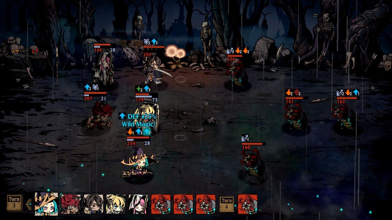 Of course, this is easier said than done. Mistover is played in two parts – a roguelike map where you’ll need to crush obstacles, find treasure, complete requests, and most importantly, navigate your way to the exit without horrifically dying. In this section, Expedition Skills that each class of character has is key, and I found myself leading with the Paladin or Sister quite often, with the former being able to break obstacles without losing health, and the latter being able to improve natural healing at the touch of a button. The roguelike map also serves a purpose in that it illuminates enemies that are coming to attack you, and this lets you first strike them most of the time. In battle, players must position up to five characters on a 9-tile grid, with player formations having an effect on what attacks are usable, and what enemies they strike. What complicates things are skills that require characters to stand next to each other, as well as many side effects from skills that end up moving your or the enemy around. Thanks to this, it’s not uncommon to find your formation out of wack, leading to earlier deaths in my case. Like in Darkest Dungeon, the best way to survive fights is to carefully use player turns so that enemy turns are more manageable, such as stunning some enemies and slowing others down. However, the constant movement of your characters around the grid forces things to be unpredictable, and many times my strategy didn’t play out thanks to the side effects of either player or monster skills.