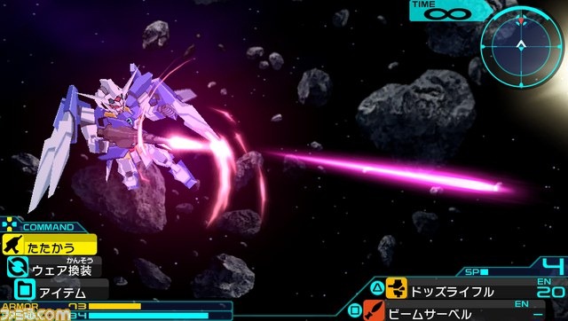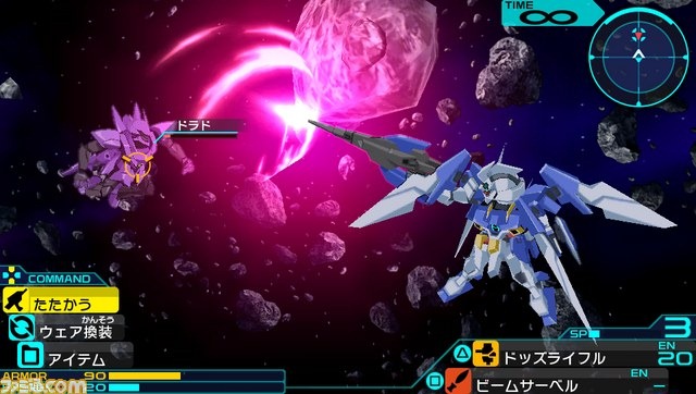 Mobile Suit Gundam AGE has an action based battle system. You can move your mobile suit on the battlefield and select attacks like using the Beam Saber or the DODS rifle.