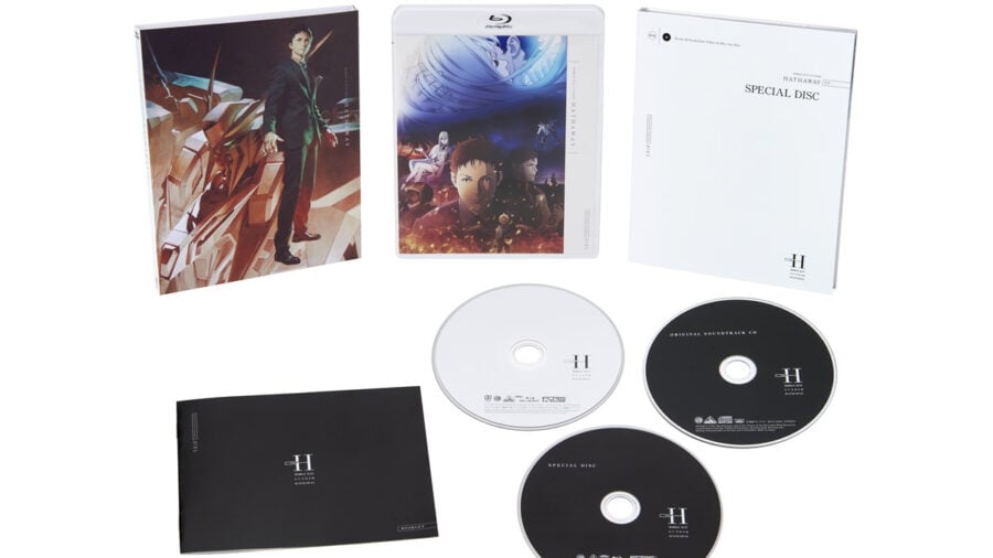 Sunrise has announced that the Blu-ray release of Mobile Suit Gundam: Hathaway’s Flash will launch on November 26, 2021. The studio plans to release the movie on DVD, Blu-ray, and 4K UHD formats. Bonus content will feature special footage from Gundam fan gatherings, audio commentary from the cast, and a sleeve designed by Pablo Uchida. Prices for the Blu-ray edition start from 5,000 yen (about $45). [Thanks, Famitsu!] The standard Gundam Hathaway Blu-ray will include a special 16-page booklet, as well as the aforementioned art sleeve. It will also pack a two-part audio commentary track featuring Kensho Ono (Hathaway Noa), Reina Ueda (Gigi Andalucia), Junichi Suwabe (Kenneth Sleg), Soma Saito (Lane Aim), and Sunrise producer Naohiro Ogata. Additionally, all non-UHD Blu-ray versions will feature optional subtitles. Languages will include Japanese, English, French, Korean, Thai, and Simplified and Mandarin Chinese. In addition to the above content, the special edition Gundam Hathaway Blu-ray will also feature a CD of the film’s original soundtrack produced by Hiroyuki Sawano. A bonus disc will include footage from the Gundam Fan Gathering hosted on March 24, 2020. Also on the bonus disc is the Gundam Hathaway special stage event at Gunpla Expo 2020 on November 12, 2020. The Mobile Suit Gundam Unicorn suite live performance by Hiroyuki Sawano and Project emU rounds out the disc. The special edition will cost ¥9,900 (about $90). You can get a better look at the Gundam Hathaway Blu-ray sleeve and discs below.