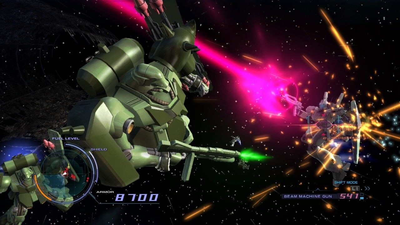 Mobile Suit Gundam Unicorn plays like a third-person shooter, but mobile suits are too big to hide behind sandbags. Asteroids are cover points in the upcoming PlayStation 3 game. When you take cover enemies lose their target and lock-on, which should give you a breather from beam rifle blasts.