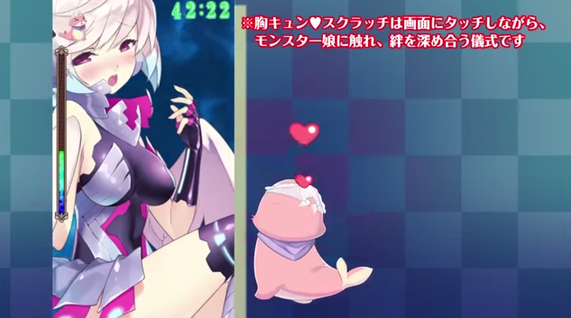 In Monster Monpiece, it was pretty rough on your hands to perform massages on so many under-leveled monster girls, that it could become tiresome after a while. The gameplay footage at 0:40 shows how you’ll now be able to bond with two girls at the same time.