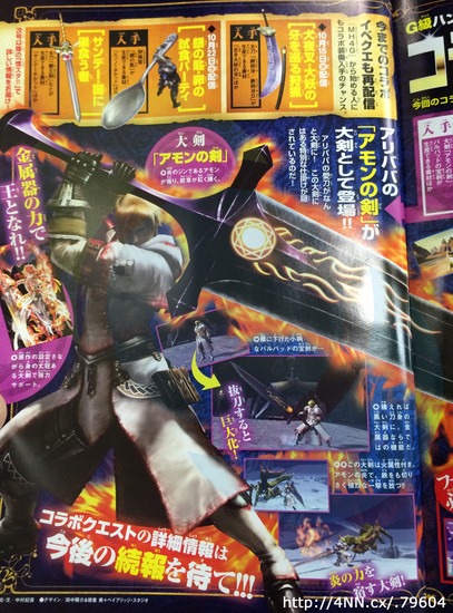 More collaborative anime content has been announced for Monster Hunter 4 Ultimate. Japan’s Weekly Shonen Sunday magazine reveals that weapons from the Magi anime and manga will be included in the game. (Thanks, Anime News Network) Players will be able to equip Aladdin’s staff and Alibaba’s sword Amon within the game. Additionally, collaboration quests will be included in the game as well, and players will be able to obtain a Magi-themed Guild Card. Monster Hunter 4 Ultimate will be released in Japan this Saturday. A western release will follow sometime in early 2015.