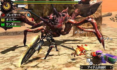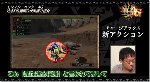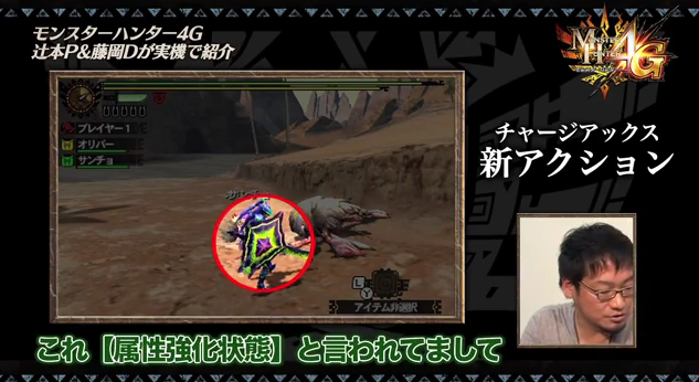Producer Ryozo Tsujimoto and director Kaname Fujioka recently showed off the new and improved Old Desert map, and in the third installment of their ongoing Monster Hunter 4 Ultimate video series about new additions, they give us a closer look at some new weapon features in action. Tsujimoto starts out by saying that the Charge Blade probably saw the biggest changes in Monster Hunter 4 Ultimate, which they promptly demonstrate in the video. Fujioka shows off the basics, where you charge up energy using Sword mode to stock it in the bottles, then unleash it through a powerful Axe mode attack.
