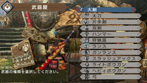 Now let’s take a look at the inhabitants of the village. Like other Monster Hunter games before it, Portable 3rd lets you interact with a variety of villagers in Yukumo, each one with their own service to aid you in shaping your character and completing your quests.