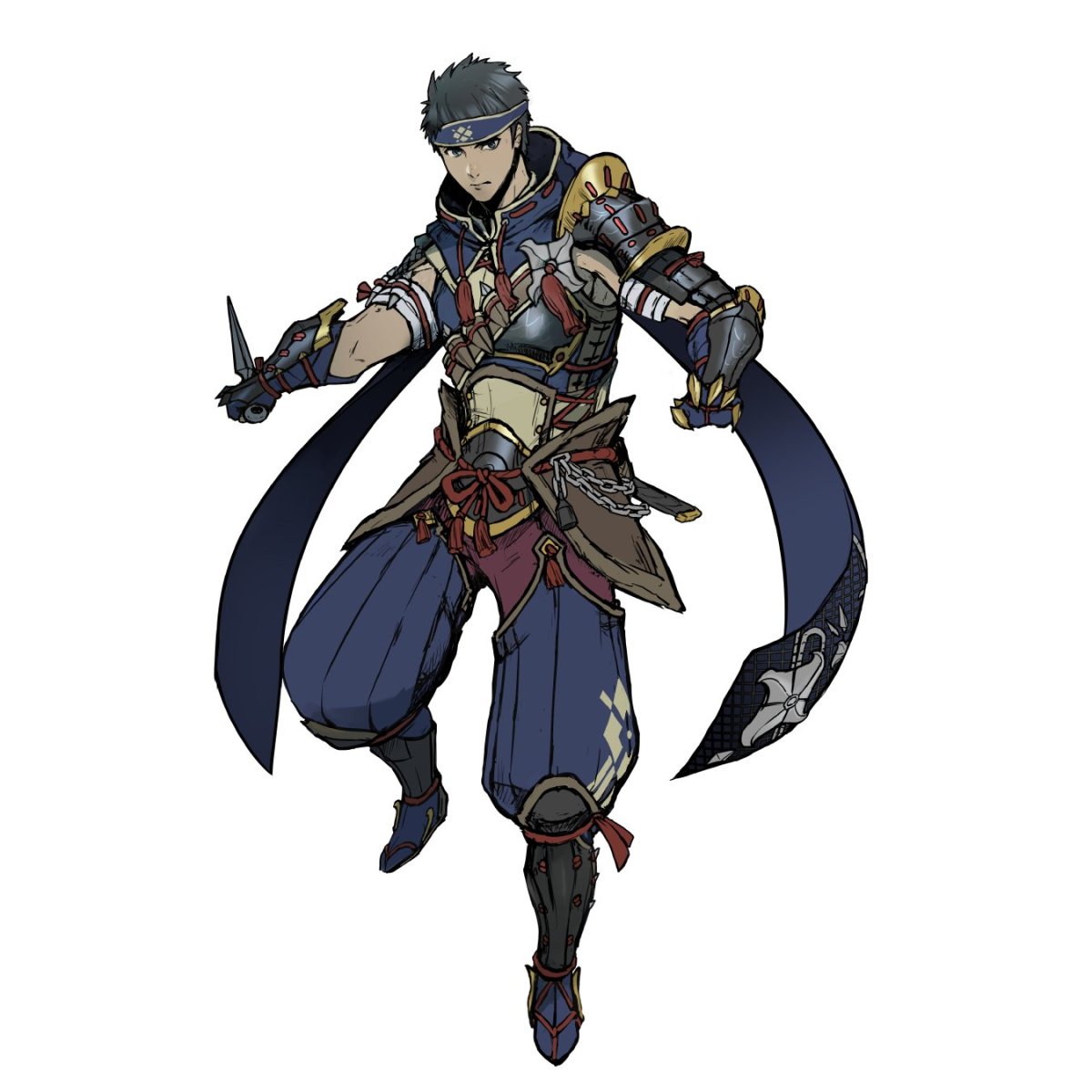 Here’s a preliminary look at Monster Hunter Rise starter armor. The two images are identical, though the second one zooms in so you can see the kunai and other details on the upper half of the set.
