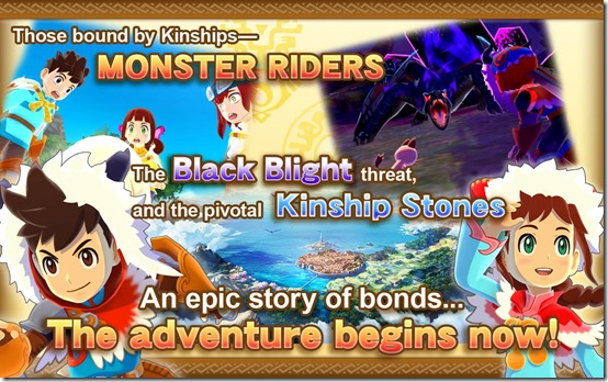 In a world where large monsters roam, and people everywhere make a living hunting, there’s a remote village of people who follow a different set of customs. They are the Monster Riders, a people who don’t hunt but instead form bonds with monsters. Unlike hunters, they raise and live in harmony with monsters, forming inseparable bonds with them using mysterious artifacts known as Kinship Stones. The monsters that form kinships with Riders, known as “Monsties,” possess incredible powers. By becoming a Rider, you too can befriend countless Monsties, riding them as you explore a vast, exciting world. Join the adventure and “Ride On!”