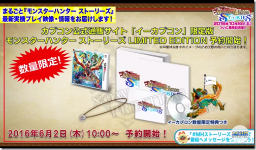 · The limited collector’s edition of Monster Hunter Stories will be sold on the E-Capcom Online Store starting June 2nd. It will come with the game, an official soundtrack, an art book, a bond stone, and a digital download code for a special Zinogre. Oh, and it looks like this: