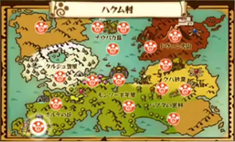 · At 1:24:20, they show the game’s World Map by accident. It features a number of villages, including ones situated in snowy mountains (Talju Heights), a desert (Kuba Desert), a volcano range (Twin Peaks), the coast, and a mysterious island called Naobaku Island. Here’s an image:
