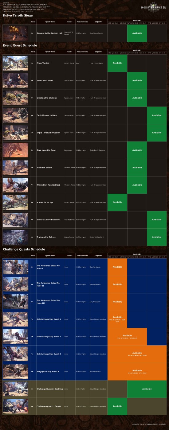 Here’s the full schedule of Event Quests available through June 7, 2018: