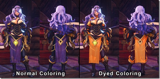 Here is an image from zStatykz showing how the normal and dyed full versions of the Camilla mod look, as well as one showing how her axe looks in-game.