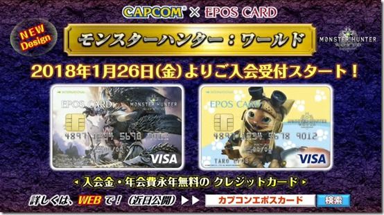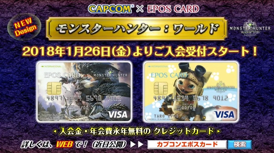 A Capcom x EPOS Visa card collaboration was also announced. These will be available starting January 26 and will come in Nergigante and Felyne design variations.