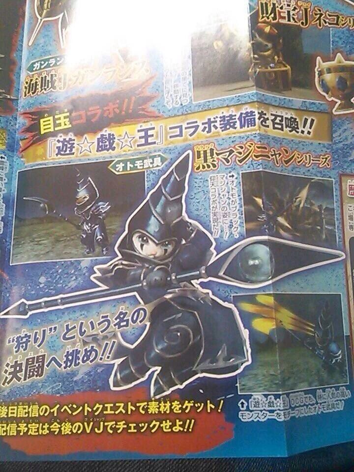 There’s been plenty of collaborations announced for Monster Hunter X lately, and the most recent one was shown in the latest issue of V-Jump with a Yu-Gi-Oh! collaboration costume. [Thanks, Hachima.] As shown in the magazine scan, the upcoming collaboration with Yu-Gi-Oh! brings the “Dark Magician Series” outfit for your Palico. This set can be unlocked through a downloadable event quest that will be available after the game releases in Japan on November 28, 2015 for Nintendo 3DS.