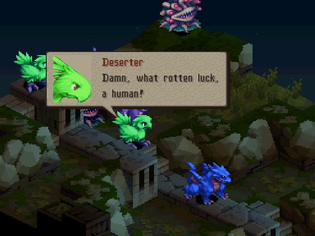 Players are no longer able to recruit human units, instead finding new monster allies through random battles. The monster units are greatly expanded compared to the original game, offering at least four skills each, as well as new innate abilities and status/elemental weaknesses.